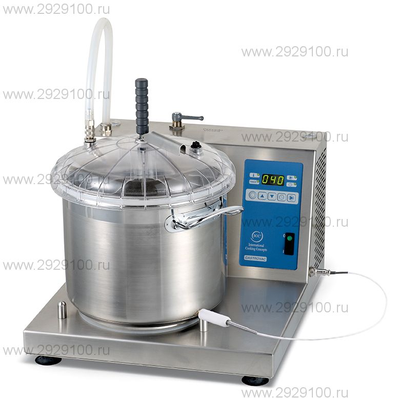 Аппарат Gastrovac - это аппарат для приготовления продуктов под вакуумом (приготовление в вакууме), который состоит из кастрюли с корзинкой внутри, вакуумного насоса и тепловой поверхности. Максимальный уровень вакуума достигается при давлении — 0,8bar, в зависимости от рабочей температуры.