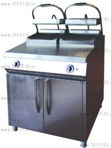 Описание Гриль контактный Ф2ЖТЛКтЭКонтактный гриль Ф2ЖТЛКтЭ с рифленной жарочной поверхностью и выполнена из чугуна. Для удобства формирования блюда (топпинг) имеется нейтральная поверхность выполненная полностью из нержавеющей стали. Подставка выполненна из нержавеющей стали в виде нейтрального шкафа для кухонного инвентаря.