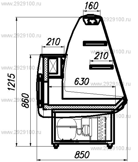 Микропроцессорный управляющий блок оборудован индикатором температуры, так что управлять холодильной витриной легко и удобно. Изоляция корпуса, столешницы и боковин изготовлена из пенополиуретана, а сама столешница и поверхности для экспозиции — из оцинкованной стали серого цвета.