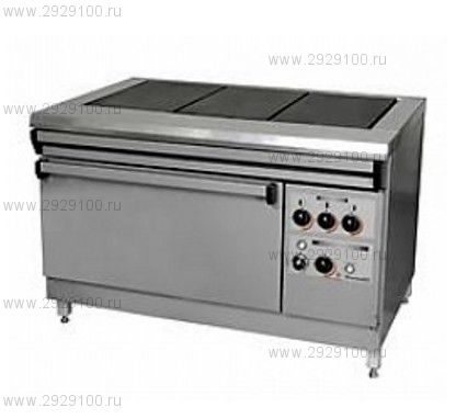 Описание Плита электрическая ПЭ-0,51ШППромышленная электрическая плита ПЭ-0,51ШП оборудована тремя конфорками, а также вместительным духовым шкафом. Печь запитывается от трехфазной электросети и обладает мощностью 12 кВт, разогревая конфорки до рабочей температуры за 25 минут. В комплекте имеются четыре полноразмерных противня. Управление температурным режимом производится при помощи регуляторов, установленных на передней панели модели, работа с этим агрегатом не требует специальных навыков и знаний. Плита поста в обслуживании, ее конструкция соответствует требованиям безопасности и санитарно-гигиеническим нормам. Объём жарочного шкафа, 150 л. Характеристики Плита электрическая ПЭ-0,51ШП