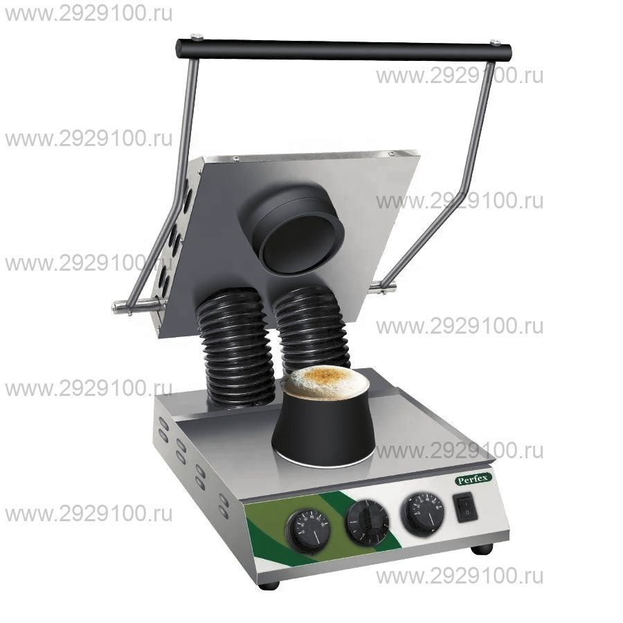 Сендвич - глубина 5см, высота 5см, диаметр 11см Ключевые преимущества: Готовит за 30 секунд! Благодаря этому начинка (даже мороженое!) не успевает нагреться и остается прохладной. Надежное соединение: Специальная форма не только запаивает, но и обрезает лишнее, создавая прочный шов. Идеально для бизнеса: Удивите гостей и создайте оригинальное меню для фаст-фуда. Производительность — до 50 шт./час. Контроль качества: Встроенный таймер для точного времени приготовления. Характеристики: Температура: 100–280 °C Время прогрева: 30 мин. Материал: алюминиево-медный сплав Характеристики Гриль для закрытых сэндвичей Perfex PSG-01