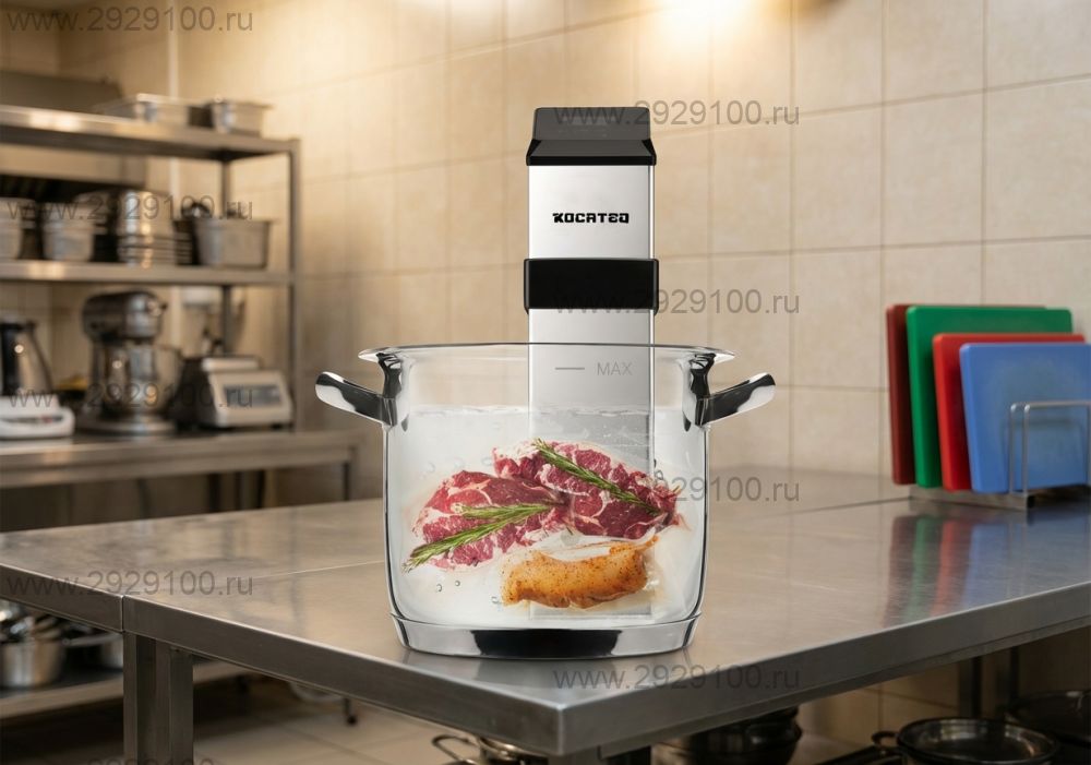 Описание Погружной су-вид Kocateq BM 200 SVПогружной су-вид кипятильник для поддержания заданной температуры воды в произвольной ёмкости с активным перемешиванием. - Тип: погружной - Объём воды: от 5 до 22 л - Температурный режим: от 0 до 90 °C - Управление: сенсорная панель, LED-дисплей - Регулятор температуры: ПИД (для точного контроля температуры) - Точность регулировки температуры: ±0,5 °C - Таймер: от 1 минуты до 99 часов - Автоотключение при превышении максимального и минимального уровня воды: да - Крепление: монтажная скоба - Материал элементов, контактирующих с водой: нержавеющая сталь AISI 304 - Класс защиты: IP65 - Рекомендуемая глубина ёмкости: 200 мм - Гастроемкости и крышки в комплект не входят Страна производства: Китай Характеристики Погружной су-вид Kocateq BM 200 SV