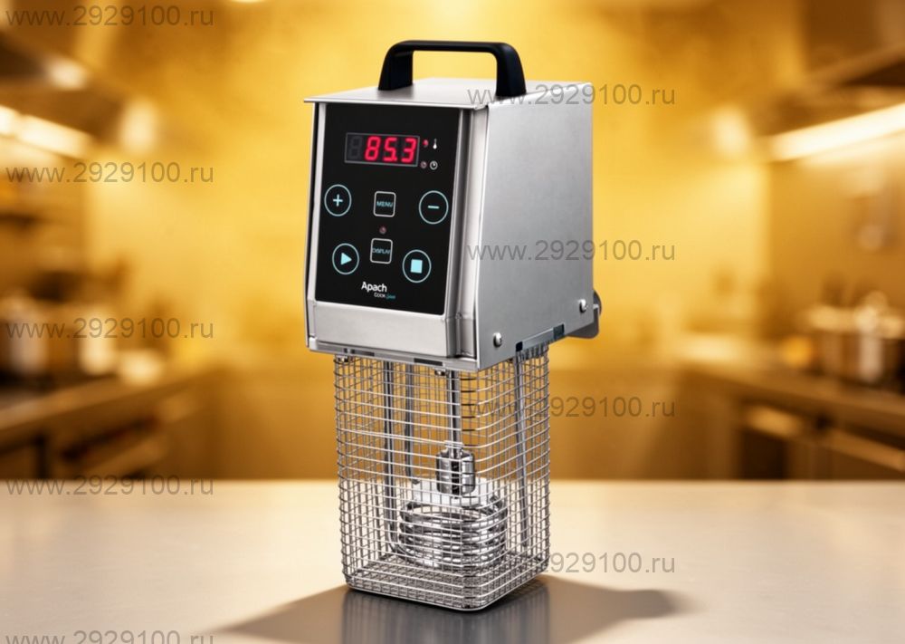 Описание Погружной су-вид Apach ASV2 NewПогружной циркулятор для приготовления блюд по технологии sous-vide в профессиональной кухне. Предназначен для точного поддержания температуры и равномерной циркуляции воды при длительной тепловой обработке продуктов. - Тип: погружной циркулятор (sous-vide) - Рекомендуемый объём воды: до 43 л - Диапазон температур: от +30 до +99 °C - Точность поддержания температуры: ±0,1 °C - Циркуляция: встроенная помпа для равномерного нагрева всего объёма - Управление: электронное, дисплей с индикацией параметров - Память программ: до 25 пользовательских программ - Функции: отложенный старт от 10 минут до 24 часов - Крепление: зажим для установки на гастроёмкость или ванну - Корпус: нержавеющая сталь - Назначение: мясо, рыба, овощи, полуфабрикаты, точное низкотемпературное приготовление - Страна производства: Италия