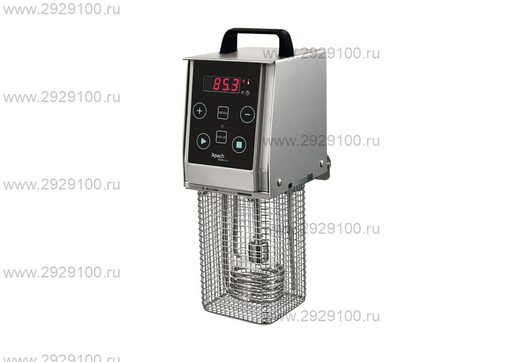 Описание Ротационный кипятильник Apach ASV2 NewПогружной циркулятор для приготовления блюд по технологии sous-vide в профессиональной кухне. Предназначен для точного поддержания температуры и равномерной циркуляции воды при длительной тепловой обработке продуктов. - Тип: погружной циркулятор (sous-vide) - Рекомендуемый объём воды: до 43 л - Диапазон температур: от +30 до +99 °C - Точность поддержания температуры: ±0,1 °C - Циркуляция: встроенная помпа для равномерного нагрева всего объёма - Управление: электронное, дисплей с индикацией параметров - Память программ: до 25 пользовательских программ - Функции: отложенный старт от 10 минут до 24 часов - Крепление: зажим для установки на гастроёмкость или ванну - Корпус: нержавеющая сталь - Назначение: мясо, рыба, овощи, полуфабрикаты, точное низкотемпературное приготовление - Страна производства: Италия