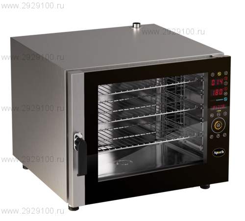 Описание Пароконвектомат APACH A1/6LDПростой и надежный пароконвектомат APACH A1/6LD, рассчитанный на 6 уровней загрузки (расстояние между уровнями 70 мм), станет незаменимым помощником на вашей кухне. Равномерное распределение воздуха и тепла внутри рабочей камеры достигается за счет работы мощных реверсивных вентиляторов (2 скорости вращения). Имеются функции предварительного разогрева, ускоренного охлаждения, отложенного запуска приготовления и система регулирования интенсивности парообразования. Также данная модель дает возможность использовать 99 программ памяти и до 4-х фаз приготовления. Сенсорная панель управления интеллектуального типа позволяет легко добиться точного контроля всех параметров приготовления – температуры, влажности, времени. В комплект входят душирующее устройство, температурный щуп и 2 решетки. Опционально можно заказать автомойку и USB – порт. В комплектацию входит 2 решетки. Важно отметить, что пароконвектомат A1/6LD позволяет одновременно готовить несколько блюд из разных продуктов, при этом абсолютно исключая смешение запахов и вкусов. Таким образом время, затрачиваемое на приготовление, значительно сокращается, а качество получается отменным. Тип пароувлажнения - инжекторный, автоматическая система очистки - нет. Температурный режим 260 °С. Щуп для измерения внутренней температуры продукта - есть. Посмотреть видео работы можно здесь Скачать инструкцию к Пароконвектомату APACH A1/6LD Характеристики Пароконвектомат APACH A1/6LD