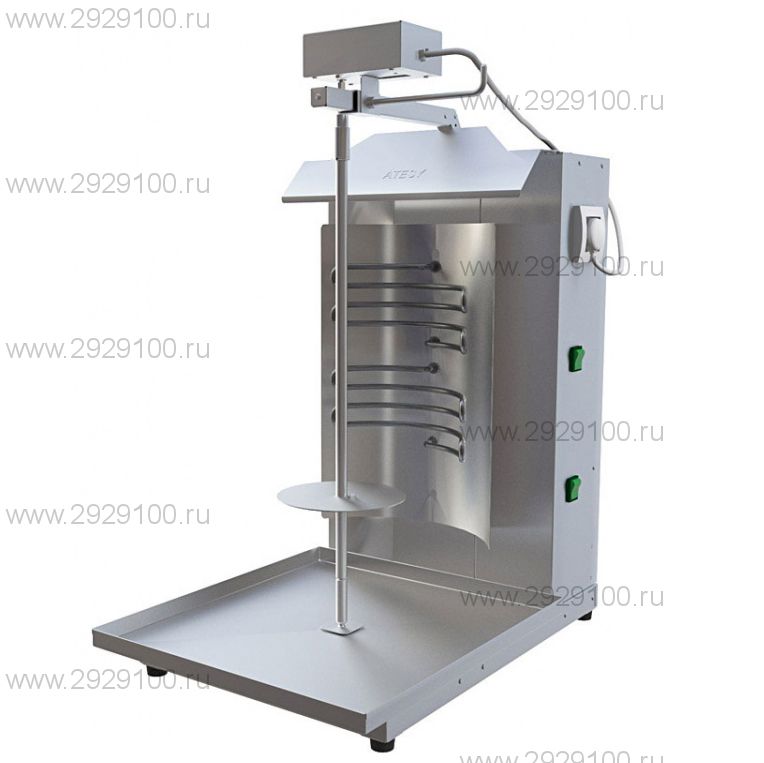 Описание Аппарат для приготовления шаурмы 2 ЭЛ МАппарат для приготовления шаурмы с электромотором ATESY Шаурма-2 ЭЛ М используется на точках общественного питания и торговли для приготовления мясной начинки и шашлыка. Принцип действия оборудования заключается в том, что мясная нарезка насаживается на специальный нож, который вращается вокруг своей оси около ТЭНов до ее полной готовности.