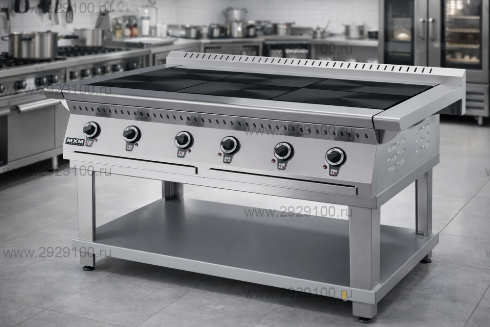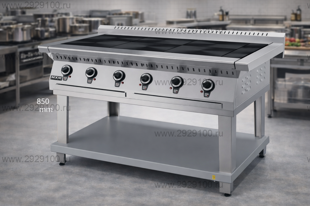 - Установка: напольная - Оснащение: подставка (стенд) с полкой - Количество конфорок: 6 - Тип конфорок: чугунные - Размер конфорок: 295×417 мм - Духовой шкаф: отсутствует - Регулировка мощности: ступенчатая - Максимальная нагрузка на одну конфорку: 40 кг - Температура рабочей поверхности конфорок: до 480 °C - Материал корпуса и лицевой панели: нержавеющая сталь - Ножки: регулируемые по высоте Страна производства: Россия Характеристики Плита электрическая Марихолодмаш ПЭ69П