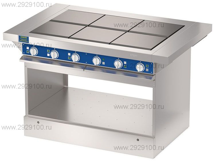 Конфорки квадратной формы (340х340мм) выполнены из углеродистой жаропрочной стали и обеспечиывают высокую скорость нагрева конфорки (до 300°С за 20 минут).