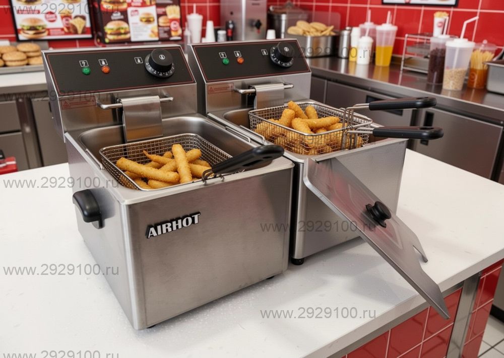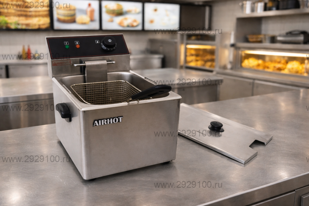 Описание Фритюрница AIRHOT EF6Фритюрница для приготовления продуктов во фритюре с холодной зоной и аварийным термостатом. - Объём ванны: 6 л - Температурный режим: от 60 до 190 °C - Холодная зона: да - Термостаты: рабочий и аварийный - Материал корпуса и ванны: нержавеющая сталь - Размер корзины: 185×240 мм Страна производства: [Китай]