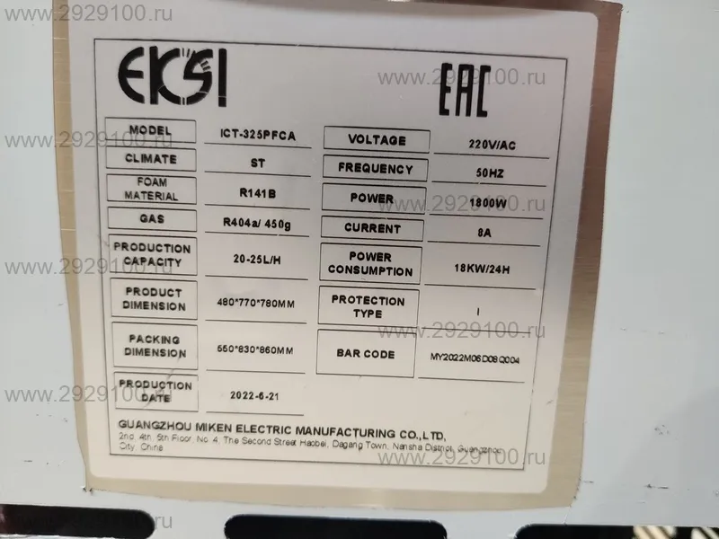 Характеристики Фризер для мороженого EKSI ICT-325PFCA