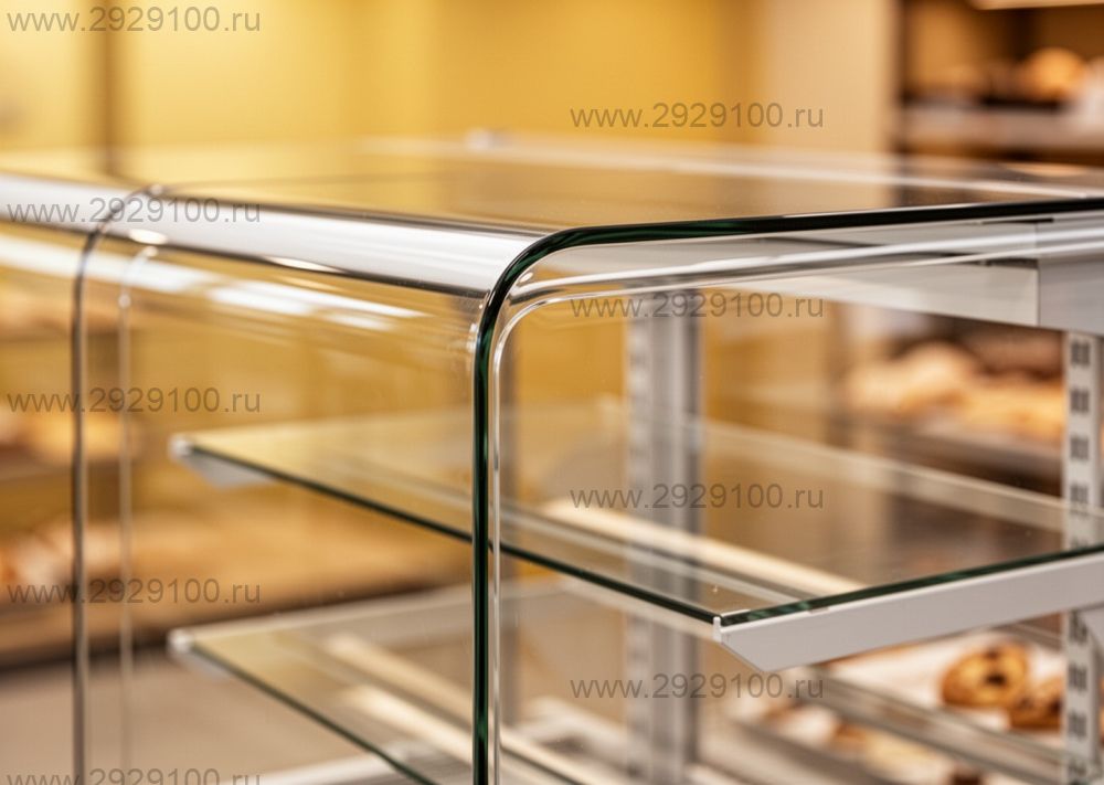 Кондитерская витрина с гнутым стеклом для охлаждения и демонстрации десертов, выпечки и кондитерских изделий.