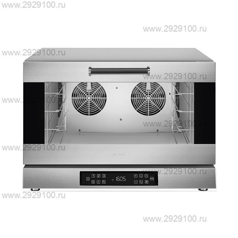 Описание Конвекционная печь Smeg Alfa 420 E1HDSПрофессиональная конвекционная печь с электронным управлением и пароувлажнением для предприятий общественного питания и пищевого производства, рассчитана на точную выпечку, приготовление и работу по стандартам HACCP. - 4 уровня с шагом 75 мм под противни 600×400 мм — профессиональный формат при компактной камере - Температурный диапазон 50–280 °C — выпечка, запекание и высокотемпературные режимы - Электронное управление с TFT-дисплеем — 100 программ и 3-этапное программирование для воспроизводимости - Пароувлажнение: 3 автоматических уровня + ручная настройка — прямое парообразование на вентиляторах - 2 реверсивных вентилятора с двумя скоростями — равномерное распределение тепла и пара - USB-порт и поддержка HACCP — выгрузка данных и контроль технологических процессов - Подключение к водопроводу (3/4″) — обязательное условие работы парового режима - Страна производства: Италия Характеристики Конвекционная печь Smeg Alfa 420 E1HDS