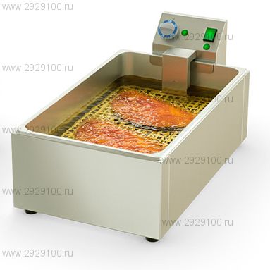 Терморегулятор способствует поддержанию во фритюрной ванне заданной температуры масла в диапазоне от 60 до 200°C. ТЭН может бесперебойно работать на протяжении долгого времени. ТЭН производит нагрев масла. Он изготовлен из пищевой нержавеющей стали высокого качества, поэтому исключает вероятность помутнения масла и возникновения неприятного запаха и горечи. Трубчатый электронагреватель (ТЭН) защищен решеткой от налипания на него теста. Все корпусные детали фритюрной ванны, включая ТЭН, и фритюрная емкость выполнены из пищевой нержавеющей стали. Температуры масла — 60-200C° Ёмкость — 13л, Объем фритюра - 6л. Время разогрева масла, не более — 30 мин. Внутренний размер ванны — 530х325х150 мм