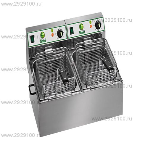 Описание Фритюрница FIMAR FT44Фритюрница электрическая FIMAR FT44 предназначена для приготовления продуктов в большом количестве жира. Вместимость корзины: 0,5 +0,5 кг Рабочая температура: 0÷180° C Время нагрева от 0 до 180° C: ~ 7 минут Время обжаривания: ~ 6 минут Производительность: 4,5 + 4,5 кг/час Корпус, ванна и крышка выполнена из нержавеющей стали; выдвижные корзины из хромированной проволоки; ручки корзин и крышек из термоизолирующего пластика; ТЭНы из нержавеющей стали. Регулятор температуры позволяет изменять ее от 50÷180 ° C. Фритюрница FIMAR FT44 оснащена предохранительным термостатом с кнопкой возврата в исходное состояние. Верхний блок тенов- съемный. Характеристики Фритюрница FIMAR FT44