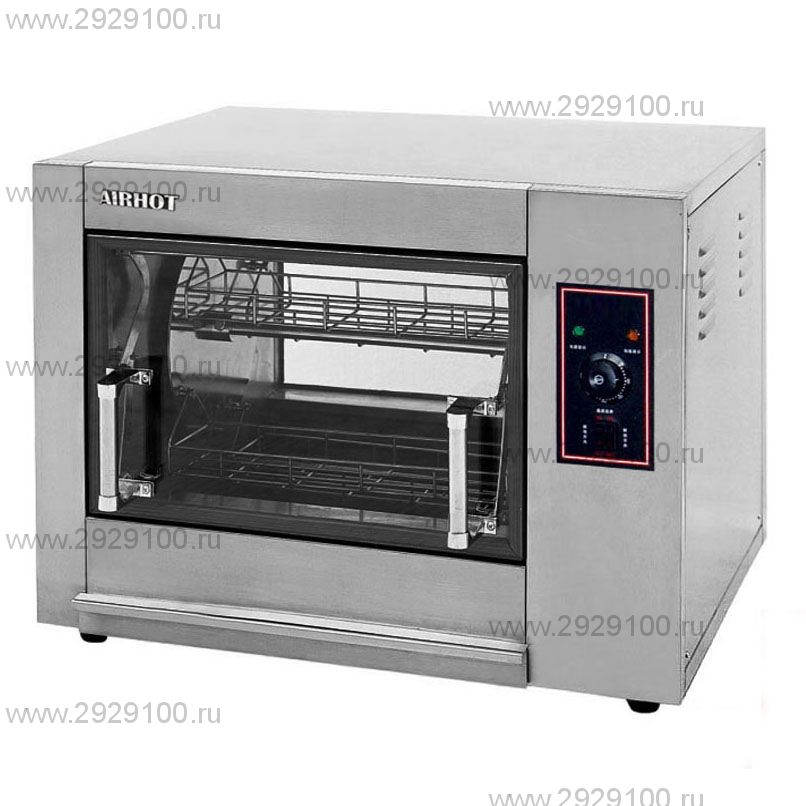 Описание Гриль на 12 кур Airhot CGE-12Гриль для кур Airhot Cge-12 на 8 (12 небольших) кур идеально подходит для супермаркетов, фудкортов, закусочных, киосков. Максимальная загрузка тушек 8-12 шт. Для облегчения очистки гриль снабжен большим выдвижным поддоном. Электронный термометр показывает текущую температуру во внутреннем объеме, а аналоговая простая панель управления позволяет регулировать температуру. Установлен регулируемый термостат с диапазоном температур от 80-200 градусов Цельсия. Поставляются в дух вариантах: настольный и на колесах. Использование для размещения обжаренного продукта 4-х люлек позволяет Вам готовить широкий перечень мясных блюд, овощей, рыбы. Наличие внутренней подсветки и сверхкомпактные размеры делает эти модели идеальным решением для супермаркетов, фудкортов, закусочных, киосков. Гриль на 12 кур Airhot Cge-12сплошным жаропрочным стеклом со стороны покупателя и сдвигающейся вверх жаропрочной стеклянной дверцей со стороны обслуживающего персонала. Два источника нагрева, расположенные в верхней и нижней частях, позволяют получать равномерное обжаривание продукта со всех сторон. Конструктивный материал, используемый при производстве - нержавеющая сталь AISI304. Для облегчения очистки гриль снабжен большим выдвижным поддоном. Электронный термометр показывает текущую температуру во внутреннем объеме, а аналоговая простая панель управления позволяет регулировать температуру. Невысокая цена и отличное качество используемых компонентов делают гриль для кур Airhot Cge-12 быстро окупаемой и выгодной инвестицией, позволяющей организовать производство жареных куриных крылышек, грудок, курицы целиком, свиных рулек, шашлыка, кебаб и других мясных блюд на предприятиях общественного питания. Характеристики Гриль на 12 кур Airhot CGE-12