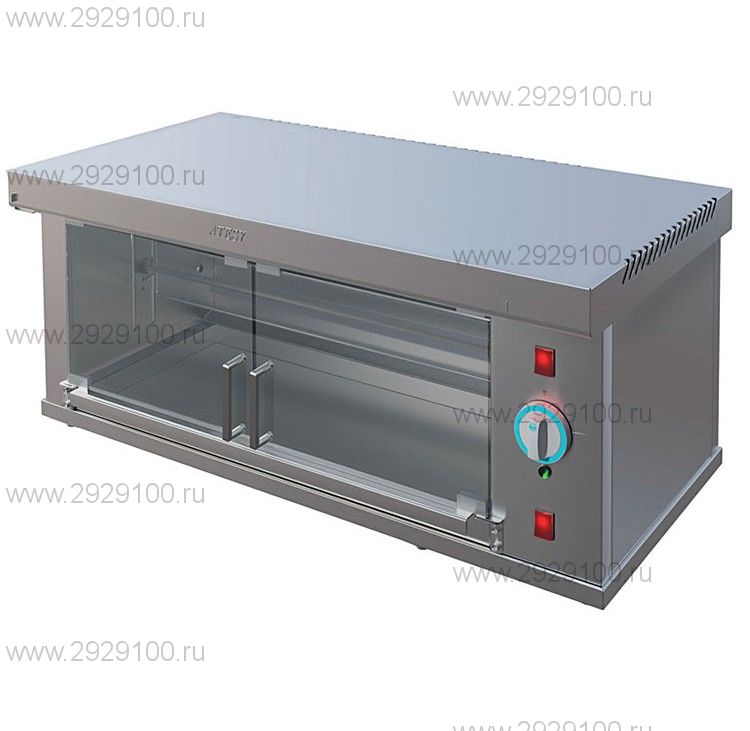 Описание Гриль для кур Командор-2/1М ATESYГриль для кур Командор-2/1М – это современный гриль электрический профессиональный, который предназначен для запекания цыплят. Такая жаровня подойдет для ресторанов, баров и кафе, установить ее можно и в открытом лотке, где предлагается фаст-фуд. Конструкция этого гриля продумана таким образом, что для его работы необходим лишь подвод электричества, поэтому его можно использовать как на оборудованных кухнях, так и в автономных лотках. В шампурных гриле для кур Командор-2/1М предварительно подготовленные куры насаживаются на шампур, вращение которого производиться электромотором. Напротив каждого шампура располагаются ТЭНы, что определяет процесс приготовления продукта посредством инфракрасного излучения. Все элементы гриля для кур Командор-2/1М выполнены из пищевой нержавеющей стали. Стеклянные дверцы гриля, изготовленные из термостойкого стекла, позволяют покупателю наблюдать за приготовлением кур, привлекая, тем самым, внимание и возбуждая аппетит. Крышка гриля имеет специальный зазор, который входит в систему вентиляции. Гарь и другие продукты сгорания во время работы всасываются в этот зазор и выводятся через отверстия на крышке гриля в вентиляцию. Благодаря этому ни стекла, ни сам гриль не покрываются нагаром и имеют аккуратный вид. Гриль для кур Командор-2/1М имеет пластмассовые ножки и поддон, который служит для сбора жира и масла. Конструкция гриля позволяет проводить санитарную обработку всех его частей.