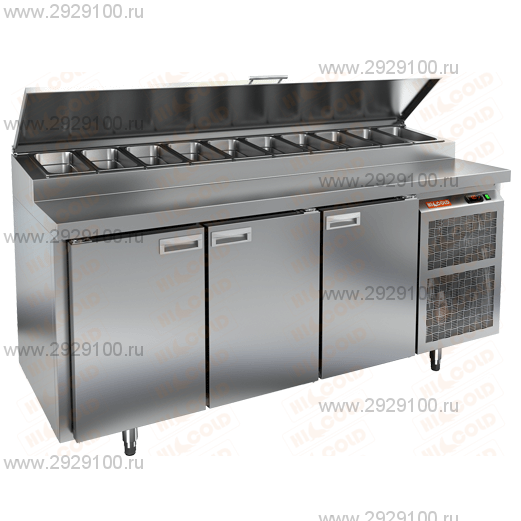 Описание Стол холодильный для пиццы HICOLD PZ2-111/GN (1/6)Стол холодильный для пиццы HICOLD PZ2-111/GN (1/6) Температурный режим +2…+10 °С В верхней части стола устанавливаются гастроемкости 1/6 GN (10шт.), максимальной глубиной 150 мм (не входят в комплект поставки). Глубина рабочей части столешницы 486 мм. Пространство между внутренней и наружной стенкой заполнено пеной-теплоизолятором. Внутри стола расположен воздухоохладитель с вентиляторами, которые обеспечивают равномерное и быстрое распределение холодного воздуха внутри полезного объема стола. В полезном объеме предусмотрены полки-решетки для укладки продуктов в герметичной упаковке. Нагрузка до 50 кг на каждую полку. Цельнозаливной корпус стола обеспечивает высокую герметичность и жесткость конструкции Характеристики Стол холодильный для пиццы HICOLD PZ2-111/GN (1/6)