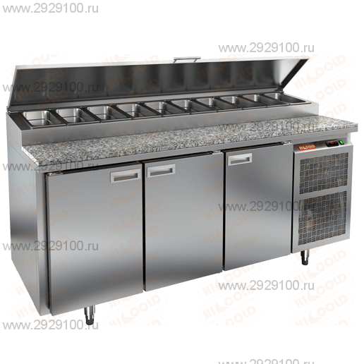 Описание Стол холодильный для пиццы HICOLD PZ2-111/GN каменьСтол холодильный для пиццы HICOLD PZ2-111/GN (1/6) с каменной столешницей Температурный режим +2…+10 °С В верхней части стола устанавливаются гастроемкости 1/6 GN (10шт.), максимальной глубиной 150 мм (не входят в комплект поставки). Верх стола накрыт каменной столешницей Пространство между внутренней и наружной стенкой заполнено пеной-теплоизолятором. Внутри стола расположен воздухоохладитель с вентиляторами, которые обеспечивают равномерное и быстрое распределение холодного воздуха внутри полезного объема стола. В полезном объеме предусмотрены полки-решетки для укладки продуктов в герметичной упаковке. Нагрузка до 50 кг на каждую полку. Цельнозаливной корпус стола обеспечивает высокую герметичность и жесткость конструкции Характеристики Стол холодильный для пиццы HICOLD PZ2-111/GN камень