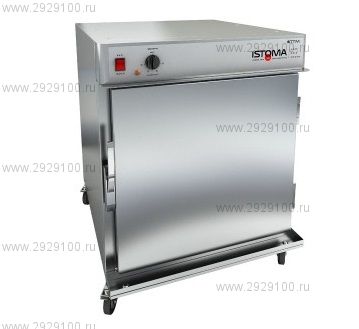 Система нагрева 3D Surround Heat обеспечивает равномерное распределение тепла и поддерживает в камере одинаковую температуру вокруг продукта без принудительной конвекции воздушного потока. Равномерное распределение тепла обеспечивается благодаря нагревательным элементам, которые располагаются по периметру камеры. Такой метод сохраняет естественную влажность продукта и при этом исключает использование иссушающих вентиляторов для распределения тепла и применение пароувлажнения. Шкаф имеет интуитивно понятное электромеханическое управление, которое включает термостат хранения (от 30С до +95С). В камере установлено 10 пар направляющих под гастроемкость GN2/1 с шагом 40мм (гастроемкости в комплект не входят). Внутренний размер камеры 560х520х660мм. В комплект печи входят две полки-решетки, поддон, съемный жиросборник и 4 поворотных колеса. Высота шкафа без колес 730мм. Характеристики Шкаф для хранения продуктов ISTOMA HOLD
