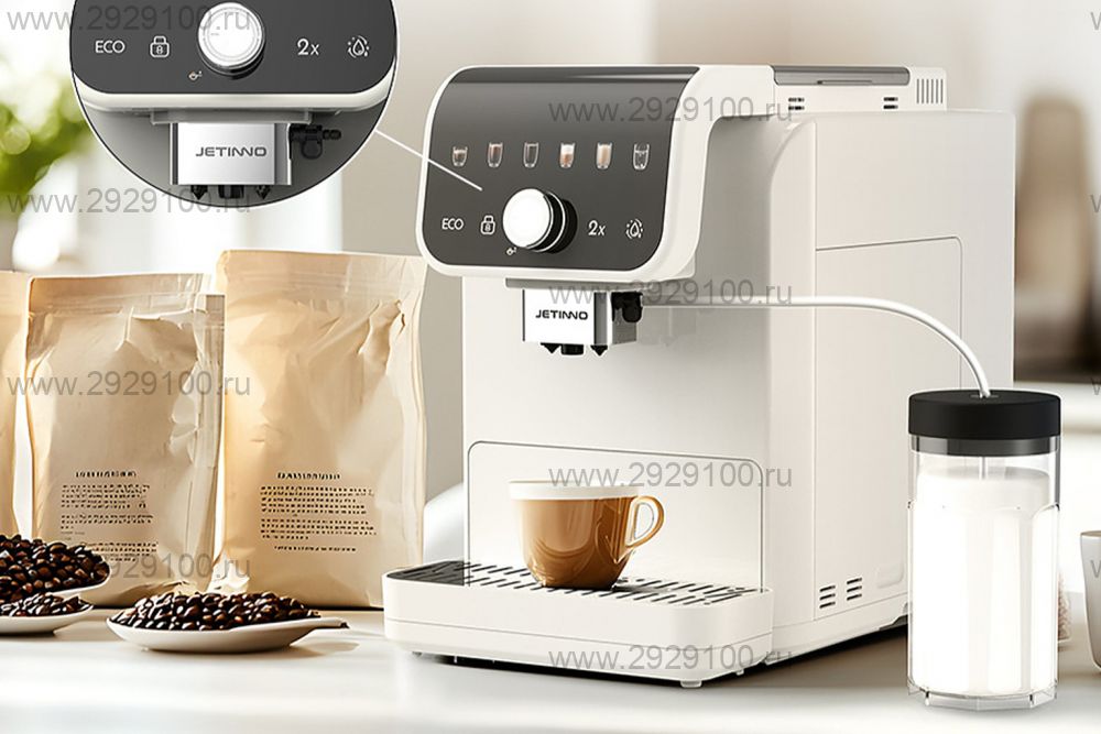 Описание Кофемашина Jetinno JL05В с капучинаторомАвтоматическая кофемашина для приготовления эспрессо и молочных напитков из зернового кофе с встроенной кофемолкой и капучинатором. - Тип: автоматическая - Тип кофе: зерновой, есть отсек для молотого кофе - Встроенная кофемолка: да - Капучинатор: автоматический - Объём резервуара для воды: 1,6 л - Контейнер для зерна: 250 г - Контейнер для отработанного кофе: до 10 порций - Управление: сенсорные кнопки, дисплей - Управление через приложение: да (Android / iOS) - Память напитков: до 20 избранных - Регулировка крепости: да - Регулировка высоты раздаточной группы: 80–140 мм - Съёмная кофегруппа: да - Автопромывка и очистка: да, включая промывку молочного контура и удаление накипи Страна производства: Китай Характеристики Кофемашина Jetinno JL05В с капучинатором