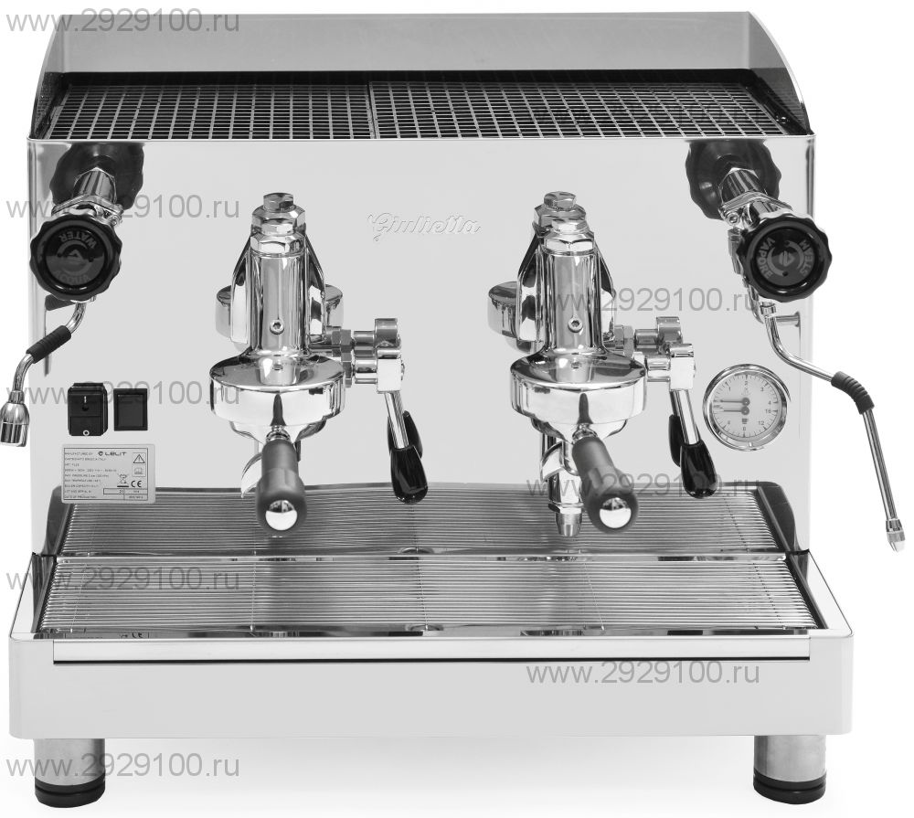 Описание Полуавтоматическая кофемашина Giulietta, 2 GRПрофессиональная 2-х группная полуавтоматическая Giulietta эспрессо-машина с традиционным дизайном. Эта недорогая кофемашина с подключением к водопроводу. Используется: молотый кофе. В комплекте: 1 и 2 ходовые портафильтры Lelit. Производительность по каждой группе: