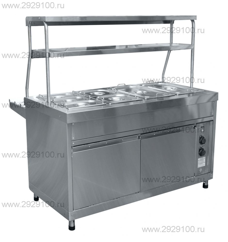 Описание Мармит 2-х блюд ЭМК-70КМ-01 паровойМармит 2-х блюд Аста ЭМК-70КМ-01 используется для непродолжительного сохранения первых и вторых блюд в гастроёмкостях в горячем состоянии, а также для раздачи их потребителям. Гастроемкости обогреваются горячим паром. Мармит 2-х блюд Аста ЭМК-70КМ-01 оснащен плавной регулировкой температуры в диапазоне от 30 до 85 °С. Внизу мармита 2-х блюд Аста ЭМК-70КМ-01 расположен нейтральный шкаф, в котором Вы можете хранить кухонный инвентарь. Над мармитом 2-х блюд Аста ЭМК-70КМ-01 в линии раздачи "Аста" расположена двойная полка с лампой подсветки. На ее большой полезной площади можно выкладывать порционные блюда. Ножки мармита 2-х блюд Аста МК-70КМ-01 для удобства регулируются по высоте. В комплект поставки входят направляющие для подносов и гастроемкости. Количество ТЭНов: 2 шт.
