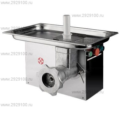 Описание Мясорубки ТМ 32М (220В)Мясорубки ТМ-32М предназначена для измельчения мяса и рыбы на фарш, повторного измельчения котлетной массы и набивки колбас на предприятиях массового питания. Шнек, корпус шнека и зажимная гайка изготовлены из массивной нержавеющей стали. С целью получения фарша различной степени измельчения мясорубки снабжены набором ножевых решеток: нож подрезной, нож крестовой- 2шт, решетка 5 мм, решетка 9 мм На загрузочной чаше расположен предохранитель, исключающий возможность доступа рук обслуживающего персонала к шнеку работающей машины. Мясорубка оснащена, кроме функций "Стоп" и "Старт", функцией "Реверс" - эта функция позволяет обойти проблему наматывания жил на шнек. Эта мясорубка обладает следующими преимуществами: * при практически одинаковой производительности энергопотребление ниже на 40% за счет использования в мясорубки червячной передачи; Производство - Беларусь