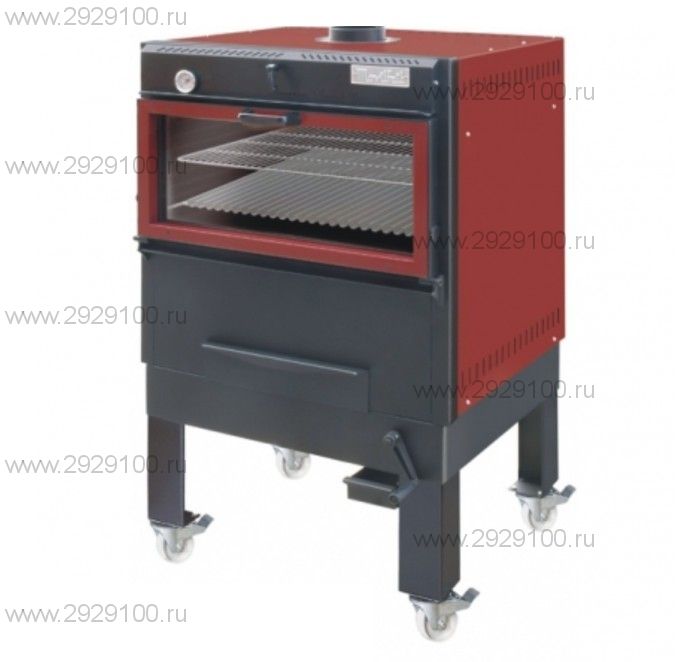 Описание Печь угольная Movilfrit BR130 передвижнаяПечь угольная Movilfrit BR130 передвижная работает на древесных углях (без газа и электричества). Производительность печи Movilfrit BR130 - 45кг/ч. Расход топлива - 10кг/день. Максимальная порция угля, загружаемого в бункер - 4/5кг. Размер жарочной решетки - 550х780мм. Дверца с большим жаропрочным стеклом обеспечивает постоянный обзор и контроль за приготовлением продукта. Подъемное устройство для угля позволяет регулировать интенсивность жара в любой момент. Внутренняя изоляция позволяет экономить расход угля и избавляет от излишнего жара вокруг печи во время ее эксплуатации. Боковые направляющие позволяют устанавливать жарочную решетку в 5 положениях по высоте. Гриль Movilfrit BR130 имеет встроенный пламегаситель, регулятор тяги воздуха, съемный жиросборник, ящик для золы, термометр. В комплекте: поддон для сбора жира и ящик для золы. Гриль требует подключения к вытяжной системе. В зависимости от загрузки и опытности оператора гриль может длительное время работать на одной порции угля. Характеристики Печь угольная Movilfrit BR130 передвижная