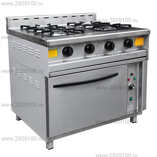 Плита оснащена четырьмя конфорками. Мощность одной конфорки 3,5 кВт. Плита и жарочный шкаф снабжены электророзжигом и системой «газ-контроль». Мощность конфорки жарочного шкафа 6 кВт. Жарочный шкаф имеет 4 уровня для противней размером 570х470 мм. Шкаф автоматически поддерживает заданную температуру от 50 до 300 С. Номинальная потребляемая электрическая мощность 0,1 кВт. В комплекте идут 2 противня из черного метала размером 570х470х40 мм. и набор жиклеров для сжиженного газа. Лицевая и верхняя часть плиты изготовлены из нержавеющей стали, остальные части из стали окрашенной порошковой краской серого цвета. Плита газовая Пищевые Технологии оснащается регулируемыми по высоте ножками. Поставляется в собранном виде на поддоне. Упаковка гофрокартон и деревянная обрешетка. Характеристики Плита газовая без духовки ПГ-4Д