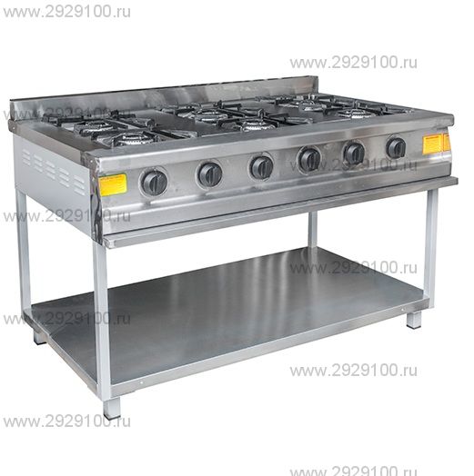Профессиональная шестиконфорочная газовая плита для высоконагруженных кухонь предприятий общественного питания. Рассчитана на одновременное приготовление большого объёма блюд, подходит для автономной установки или встраивания в технологическую линию горячего цеха.