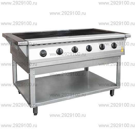 Плита электрическая 6-ти конф. без жар. шкафа ПЭП-0,72-01 (лицо нерж.) Плита оснащена шестью чугунными конфорками общей площадью 0,72 м2. Размеры конфорки 417х295 мм. Три ступени регулировки мощности конфорок. Плита электрическая Пищевые Технологии оснащается регулируемыми по высоте ножками. Лицевая и верхняя части корпуса выполнены из нержавеющей стали,остальные части из стали оцинкованной. Поставляется в собранном виде на поддоне. Упаковка гофрокартон и деревянная обрешетка.