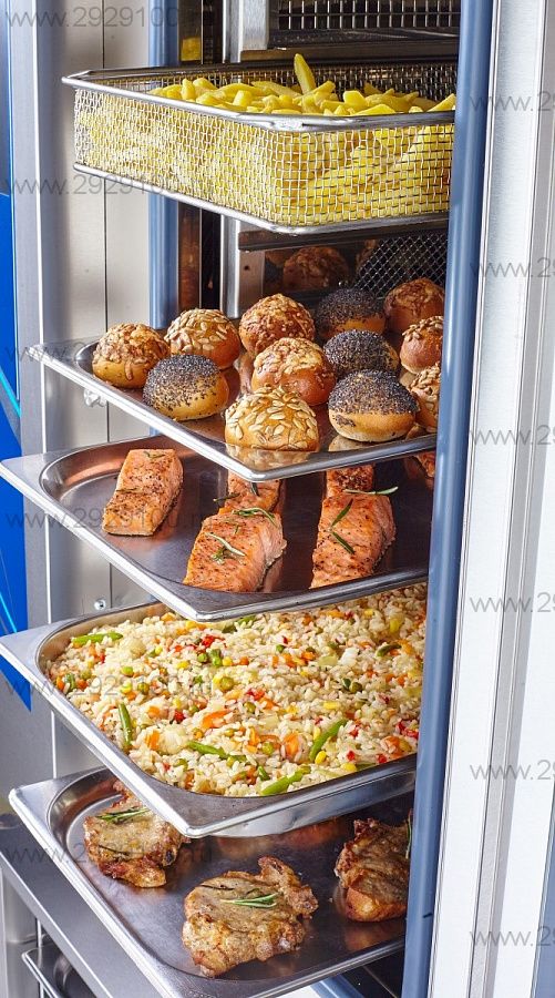 Описание Пароконвектомат Abat ПКА 20-1/1ПП2Пароконвектомат Abat ПКА 20-1/1ПП2 предназначен для обжаривания, приготовления на пару, бланширования, запекания и других видов тепловой обработки продуктов на предприятиях общественного питания и торговли. Оборудование заменяет сразу несколько видов приборов: плиту, конвекционную печь, жарочный шкаф, духовку, опрокидывающуюся сковороду, пищеварочный котел, фритюрницу и др. Приготовленные в пароконвектомате блюда сохраняют все полезные вещества. Модель оснащена подсветкой, легкосъемным жировым фильтром, душем для мойки и дверью с двойным остеклением. Корпус и внутренняя отделка выполнены из высококачественной нержавеющей стали. Особенности: