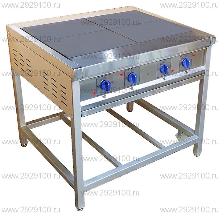 Плита электрическая оснащена ступенчатым регулированием температуры и регулируемыми по высоте ножками. Сварной каркас выполнен из окрашенной стали, облицовка - из нержавеющей стали.