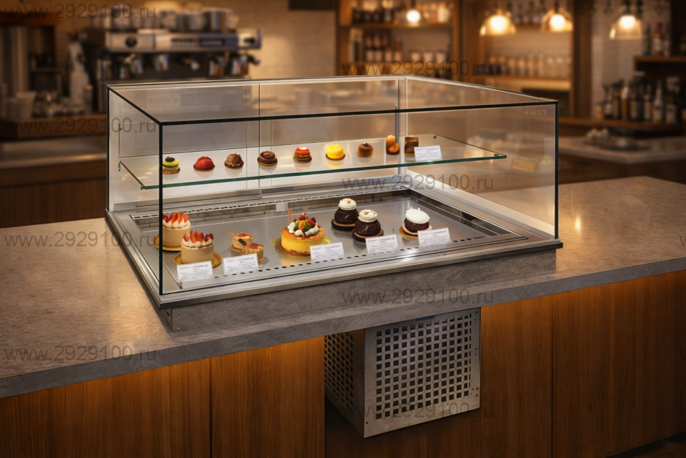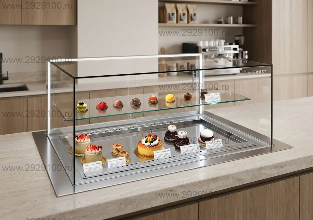Описание Витрина кондитерская Finist GlassierВстраиваемая горизонтальная витрина с прямым стеклом для охлаждаемой выкладки десертов и кондитерских изделий. - Тип установки: встраиваемая - Конструкция: с прямым стеклом - Температурный режим: от +8 до +12 °C - Тип охлаждения: динамическое - Управление: микропроцессорный блок - Оттайка испарителя: автоматическая - Двери со стороны продавца: 2 - Выкладка: на полку и на дно - Подсветка: светодиодная - Регулятор скорости вентиляторов: да - Расположение агрегата: по центру - Размеры выреза в столешнице: 1050×500 мм - Условия эксплуатации: от +10 до +25 °C, влажность до 50% Страна производства: Россия Характеристики Витрина кондитерская Finist Glassier