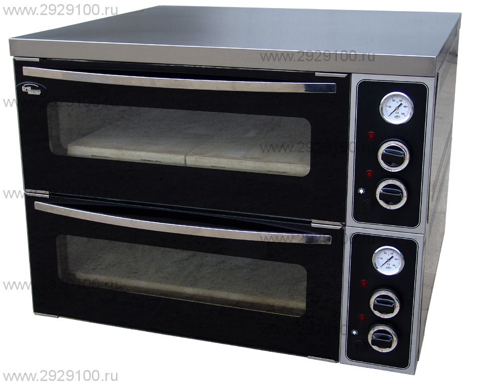 Описание Печь для пиццы 2 камерная ППЭ/2 (с природным гранитным камнем)Печь для пиццы 2-х камерная ППЭ/2 - классическая печь для пиццы с подом из шамотного или гранитного камня, рассчитанная на 4 пиццы. Печь для пиццы 2-х камерная ППЭ/2 снабжена термометрами до 500 градусов Цельсия, 2 терморегуляторами, регулирующими температуру в камере на уровне пода и верхней части камеры от 50 до 500 градусов Цельсия, а также подсветкой. Конструкция печи рассчитана на интенсивную эксплуатацию и получение качественной пиццы. Преимущества печей для пиццы с природными гранитным камнем: Внешнее исполнение печи полностью из нержавеющей стали, полное отсутствие окрашенных частей. Количество нагревательных элементов, 16шт. Характеристики Печь для пиццы 2 камерная ППЭ/2 (с природным гранитным камнем)