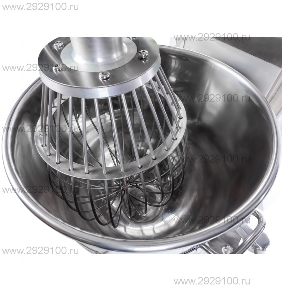 За счет планетарного вращения месильного органа в миксере масса быстро и качественно перемешивается. Сам месильный орган легко снимается для санитарной обработки. В данной модели предусмотрено четыре скорости вращения. Все части миксера, которые соприкасаются с продуктом, выполнены из пищевой стали, что также важно для получения качественных изделий. У миксера есть собственная система безопасности. В наличии защитная решетка. А при опускании дежи месильный орган отключается автоматически. Базовая комплектация