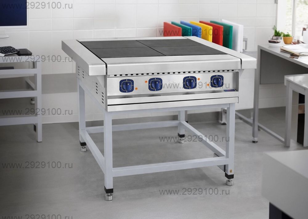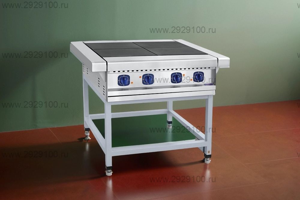Электрическая плита напольного исполнения с чугунными конфорками для приготовления блюд в наплитной посуде.