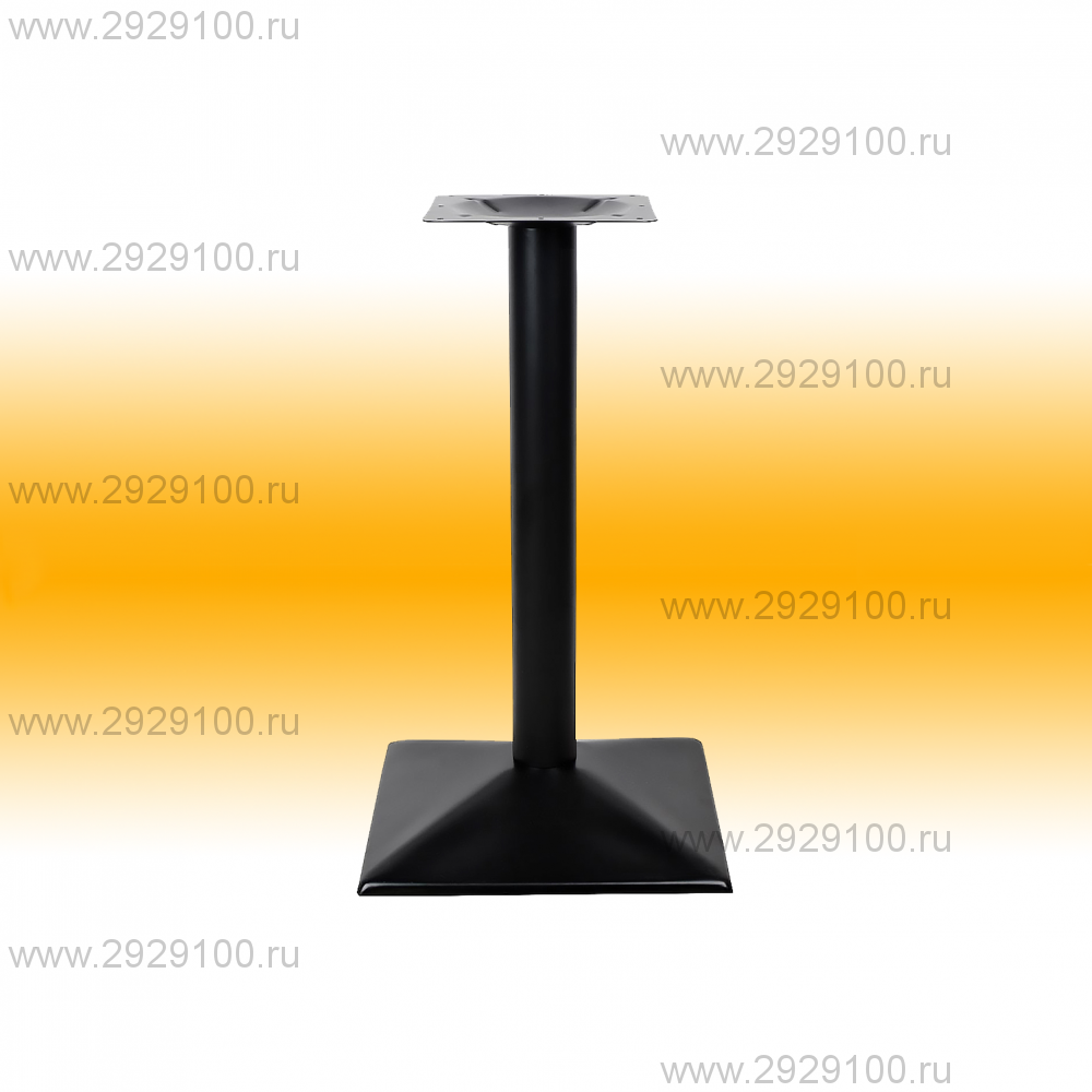 Подстолье металлическое. Труба и основание-черное порошковое покрытие. Основание пирамидальное ступеньками. Рекомендуемый размер столешницы: D-70, 70х70. Производство: КИТАЙ