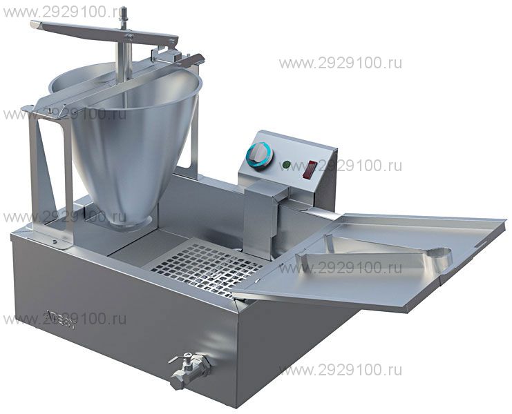 Описание Аппарат пончиковый Гольфстрим 1/1Аппарат пончиковый Гольфстрим 1/1 предназначен для формирования и приготовления в разогретом масле пончиков традиционной формы массой 30-40г. Пончиковый аппарат Гольфстрим-1/1 выполнен из пищевой нержавеющей стали и состоит из четырех основных узлов: - фритюрная ванна - ручной дозатор, который установлен над фритюрной ванной на специальном кронштейне. Он имеет уникальную головку для формирования пончиков, которая позволяет работать на тесте практически любой консистенции от жидкого до достаточно густого - Блок управления с электронагревателем. Осуществляет нагрев и поддержание заданной температуры во фритюрной ванне - Поддон. Служит для выкладки из ванны готовых пончиков Модель Гольфстрим-1/1 рассчитана на одновременное приготовление 15 пончиков, что определяет производительность в размере 200 пончиков в час. Работа аппарата начинается с формирования при помощи дозатора пончика необходимой массы и последующего его приготовления во фритюрной ванне. Процесс приготовления пончика занимает в среднем 50 секунд. В течение этого времени пончик необходимо перевернуть. По мере готовности пончики извлекаются из фритюрной ванны при помощи кулинарного пинцета Характеристики Аппарат пончиковый Гольфстрим 1/1
