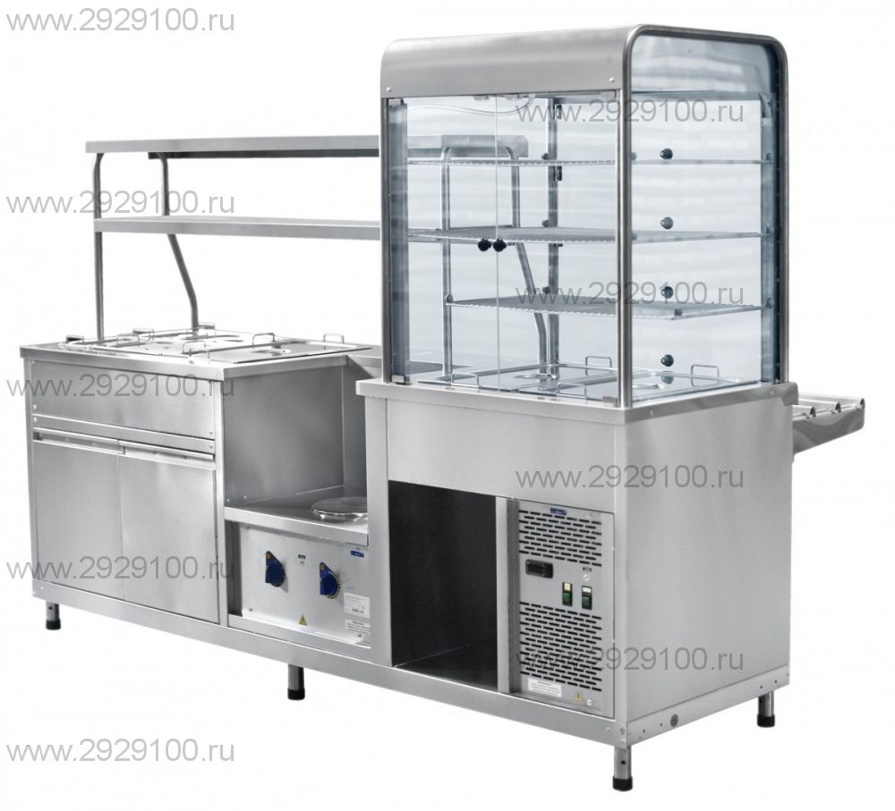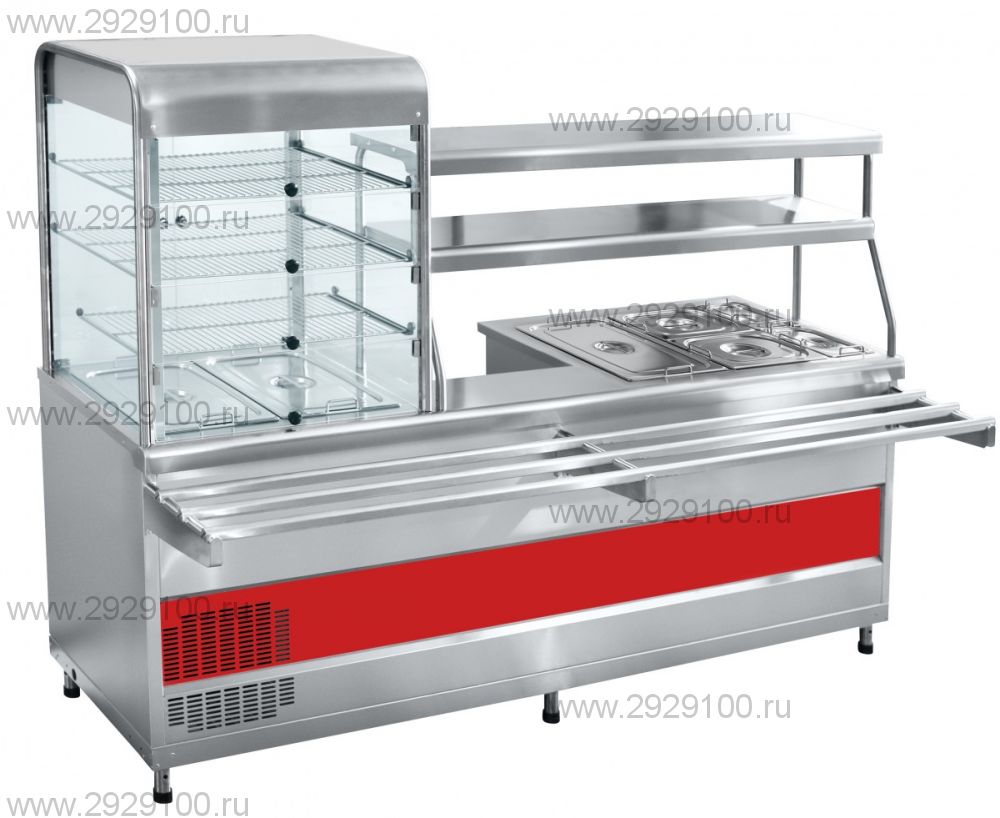 Прилавок-витрина холодильный мармитный универсальный ПВХМ -70КМУ нерж. предназначен для кратковременного сохранения: холодных закусок в витрине, а также первых и вторых блюд в гастроёмкостях в горячем состоянии и раздачи их потребителям.