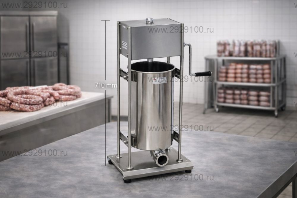 - Тип: вертикальный колбасный шприц - Объём бункера: 15 л — подходит для средних и крупных партий - Диаметр цилиндра: 219 мм - Длина цилиндра: 400 мм - Материал корпуса и бункера: пищевая нержавеющая сталь - Система выдавливания: быстрый возврат поршня в исходное положение - Скорости хода поршня: 2 - Насадки в комплекте: 4 шт. из нержавеющей стали (Ø 15 / 18 / 25 / 38 мм) - Дополнительно: запасной силиконовый уплотнитель - Назначение: колбасы, сосиски, мясные и фаршированные изделия - Область применения: колбасные цеха, рестораны, столовые, гостиницы, домашнее производство Характеристики Шприц колбасный Perfex SV-15