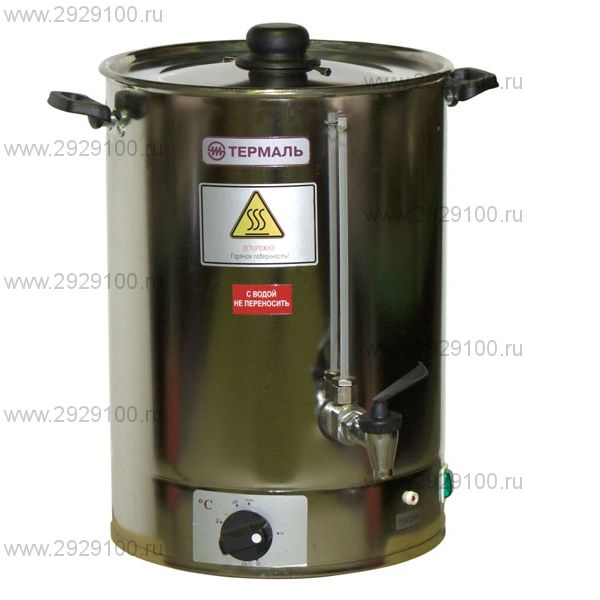 Описание Бак электрический Термаль БЭ 15/3Водонагреватель Термаль БЭ 15/3 предназначен для кипячения воды на предприятиях общественного питания, в детских садах, учебных, медицинских и др. предприятиях. Кипятильник накопительный с объёмом бака до 15л, полная вместимость состаляет 17,7л Тэны расположены в нижней части корпуса, есть регулировка и поддержание температуры на заданном уровне, функция аварийного отключения, индикация режима работы. Принцип действия бака основан на нагреве воды трубчатыми электронагревателями. Характеристики Бак электрический Термаль БЭ 15/3