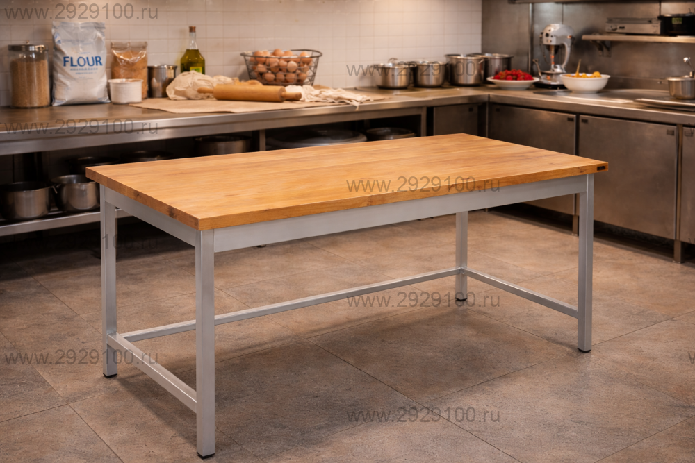 Описание Стол кондитерский Luxstahl СК-18/8 без полкиПрофессиональный кондитерский стол Luxstahl СК-18/8 с деревянной столешницей для пекарен, кондитерских и производственных кухонь. Предназначен для раскатки теста, приготовления блюд и заготовок. - Тип: кондитерский, открытый - Установка: центральная - Материал столешницы: дерево твёрдых пород - Материал каркаса: нержавеющая сталь AISI 430 - Обвязка: трёхсторонняя - Профиль ножек: квадратная труба - Ножки: регулируемые по высоте, с пластиковыми подпятниками - Конструкция: разборный каркас - Габариты: 1500×800×850 мм - Страна производства: Россия Характеристики Стол кондитерский Luxstahl СК-18/8 без полки