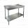 Производственный разделочный стол с бортом и сплошной полкой для подготовки сырья и размещения оборудования на устойчивой рабочей поверхности.