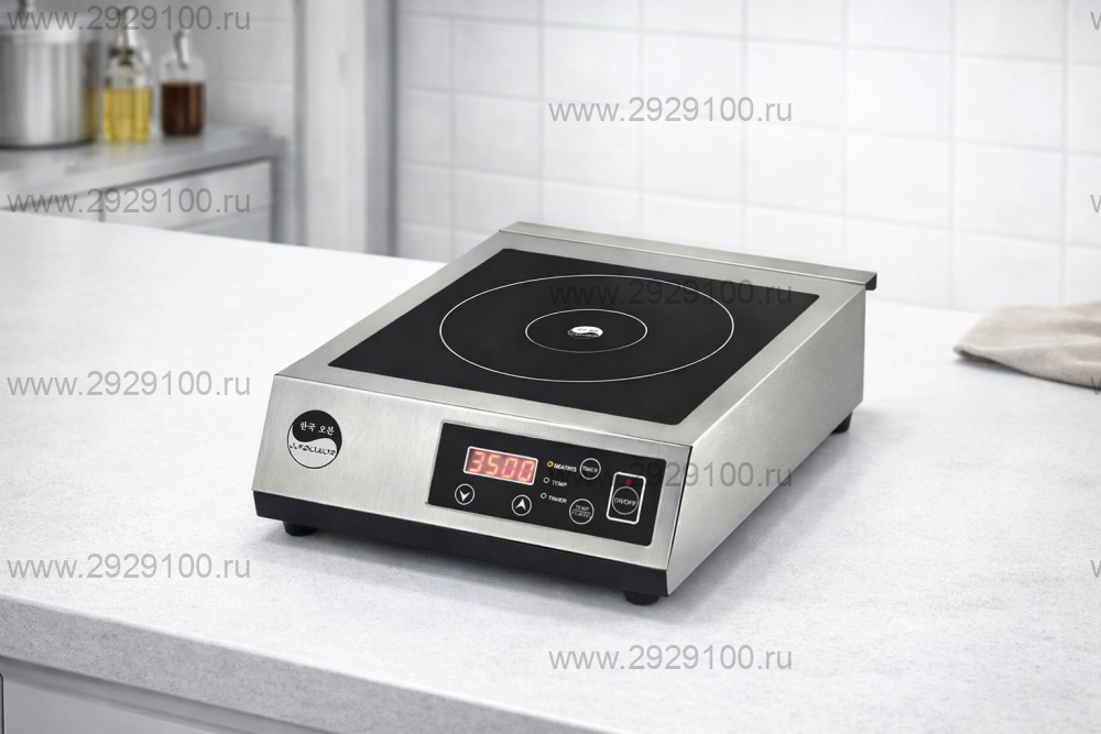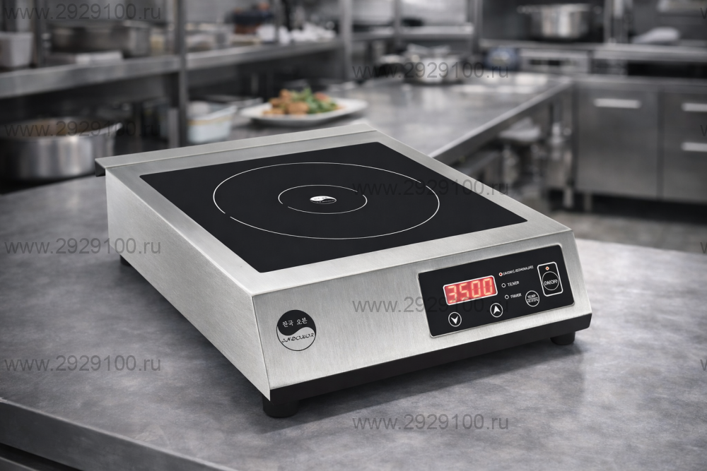 Описание Плита индукционная INDOKOR IN3500SПрофессиональная индукционная плита для быстрого приготовления и разогрева блюд на предприятиях общественного питания и торговли. Рассчитана на интенсивную эксплуатацию с высокой энергоэффективностью и точным контролем температуры. - Тип: индукционная плита (одна конфорка) - Размер зоны нагрева: 285 × 285 мм - Мощность: 10 уровней регулировки от 0,5 до 3,5 кВт - Температурные режимы: 10 уровней от 60 до 240 °C - КПД: более 90% - Управление: сенсорная панель с дисплеем - Таймер: до 180 минут - Дополнительные режимы: поддержание температуры, импульсный режим - Безопасность: автостарт при установке посуды, автоотключение при снятии, нагрев только дна посуды - Максимальная нагрузка на поверхность: до 35 кг - Охлаждение: двойная система вентиляции (4 вентилятора) - Материал корпуса: нержавеющая сталь AISI 304 - Материал рабочей поверхности: стеклокерамика Schott Ceran, толщина 4 мм - Обслуживание: съёмный жироулавливающий фильтр - Назначение: профессиональная кухня, высокая нагрузка - Страна производства: Южная Корея Характеристики Плита индукционная INDOKOR IN3500S