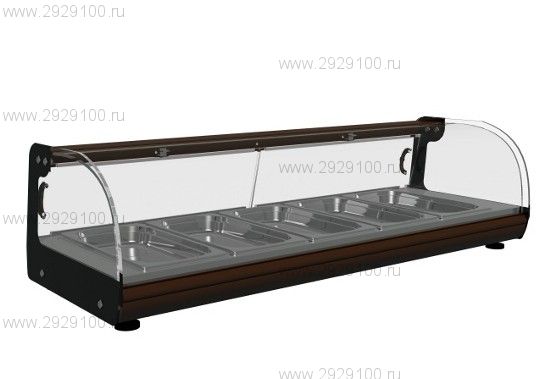 Описание Тепловая настольная витрина Carboma ВТ-1,0Настольная тепловая витрина Carboma ВТ-1,0 имеет красивый дизайн и компактный размер, поэтому отлично подойдет для небольших магазинов и кафе. Рабочая температура устройства может быть отрегулирована и до +60°С, что позволяет размещать в витрину для предпродажной демонстрации мясные и рыбные изделия, закуски, пирожки и другие горячие блюда. Недорогая и качественная витрина российского производства рассчитана на 5 гастроемкостей типоразмера GN 1/3 (размер их 325х176х40 мм), которые поставляются в комплекте. Кроме того, в стандартную комплектацию входят ТЭН и термостат. Витрину Carboma ВТ-1,0 легко чистить, и она проста в эксплуатации. Вместимость: 5 гастроёмкостей GN 1/3 (в комплекте) Характеристики Тепловая настольная витрина Carboma ВТ-1,0