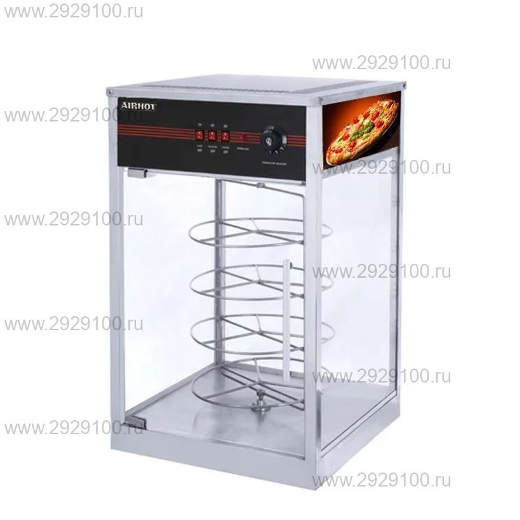Описание Тепловая витрина Airhot PDНастольная тепловая витрина предназначена для демонстрации, поддержания температуры и кратковременного хранения готовой продукции: пиццы, выпечки и закусок. Используется в пиццериях, пекарнях, фуд-кортах и торговых точках, где важно сохранить товарный вид и температуру блюд при продаже. - Тип оборудования: тепловая витрина настольная - Назначение: демонстрация и подогрев пиццы, выпечки, закусок - Температурный режим: от 30 до 90 °C — подходит для большинства готовых изделий - Вместимость: 4 вращающиеся полки для равномерной выкладки и обзора - Максимальный диаметр пиццы: до 320 мм - Формат установки: настольный — экономия пространства рабочей зоны - Обзор продукции: вращающиеся полки и внутренняя подсветка - Поддержание качества: функция контроля влажности для сохранения свежести - Управление: механический терморегулятор, индикатор работы - Материал корпуса: окрашенная сталь - Область применения: пиццерии, пекарни, фуд-корты, точки быстрого питания - Страна производства: Китай Характеристики Тепловая витрина Airhot PD