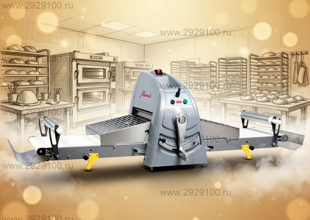 Описание Тестораскаточная машина Flamic SF500BD-1000Конвейерная тестораскаточная машина для раскатки слоеного, бездрожжевого теста, теста для пельменей, лапши и других изделий/ - Тип: конвейерная тестораскатка - Тип установки: настольная - Формат теста: прямоугольный - Ширина раскатки: 500 мм - Толщина раскатки: от 0,2 до 35 мм - Длина конвейерной ленты: 1000 мм - Диаметр цилиндра: 60 мм - Скорость ленты на выходе: 28 м/мин - Точная регулировка толщины раскатки - Реверс направления прокатки (джойстик) - Панель управления с дисплеем - Система безопасности - Съемные скребки - Материал корпуса: окрашенная сталь Страна производства: Италия Характеристики Тестораскаточная машина Flamic SF500BD-1000