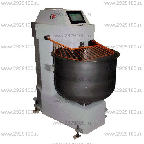 На панели также установлены кнопки «Пуск» и «Стоп». При пуске машины включается первая скорость вращения месильного органа и вращение дежи по часовой стрелке. Отработав установленное время, месильный орган автоматически плавно переключается на более высокую скорость. Дежа при этом вращается то в одну, то в другую сторону в соответствии с установленным временем на панели. Реверс осуществляется плавно. Наличие большего, чем у аналогов количества скоростей, возможность их замены по желанию заказчика, плавное переключение скоростей, плавное реверсирование вращения дежи, программирование времени работы месильного органа и дежи расширяет возможности применения машины для замеса различных видов теста.