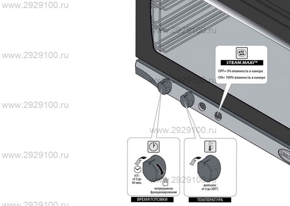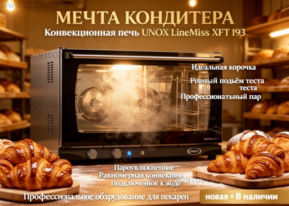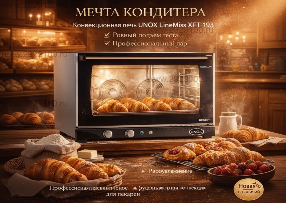 Описание Печь конвекционная Unox Rossella XFT 193Профессиональная конвекционная печь с пароувлажнением для выпечки и приготовления блюд на стандартных противнях с подключением к водопроводу. - Количество уровней: 4 (противни приобретаются отдельно) - Формат противней: 600×400 мм - Температурный диапазон: 30–260 °C - Режимы работы: конвекция, конвекция с паром - Пароувлажнение: подключение к водопроводу - Технологии: STEAM.Plus, DRY.Plus - Мощность: 6,5 кВт - Подключение: 380В / 220В фабрикой предусмотрена возможность перевода на одну фазу - Управление: механическое, режим непрерывной работы INF Страна производства: Италия Характеристики Печь конвекционная Unox Rossella XFT 193